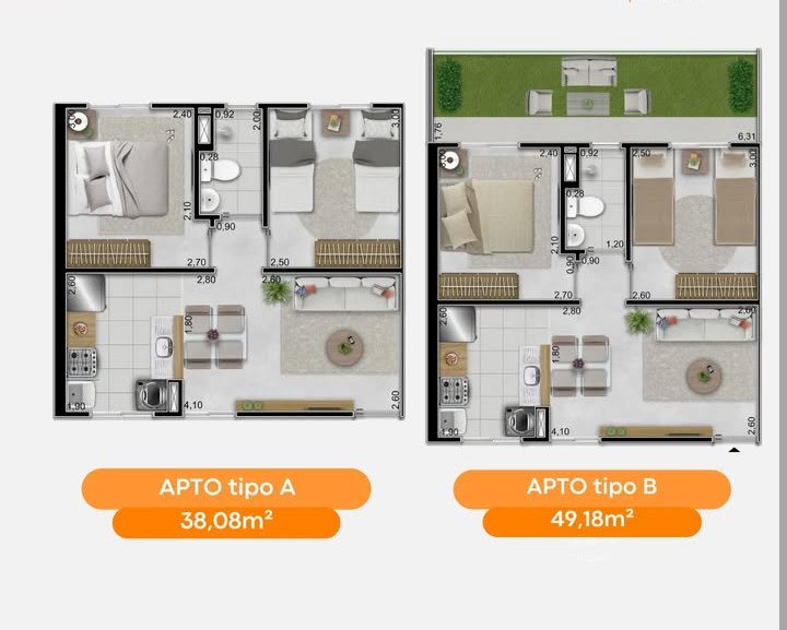 2 Quartos | A partir de 38m²